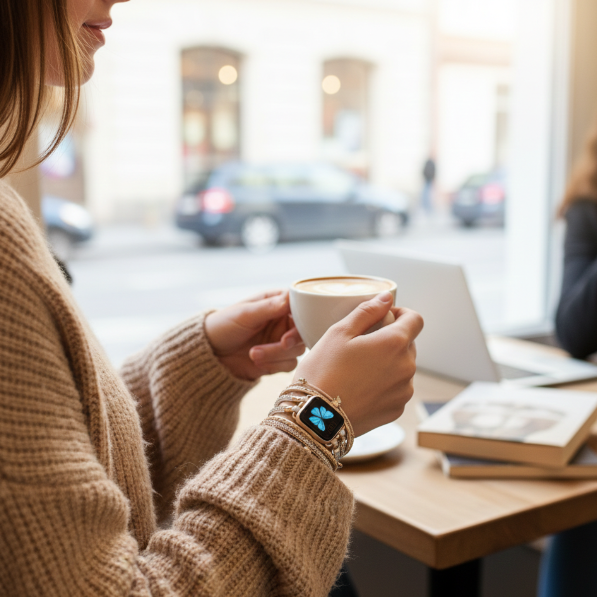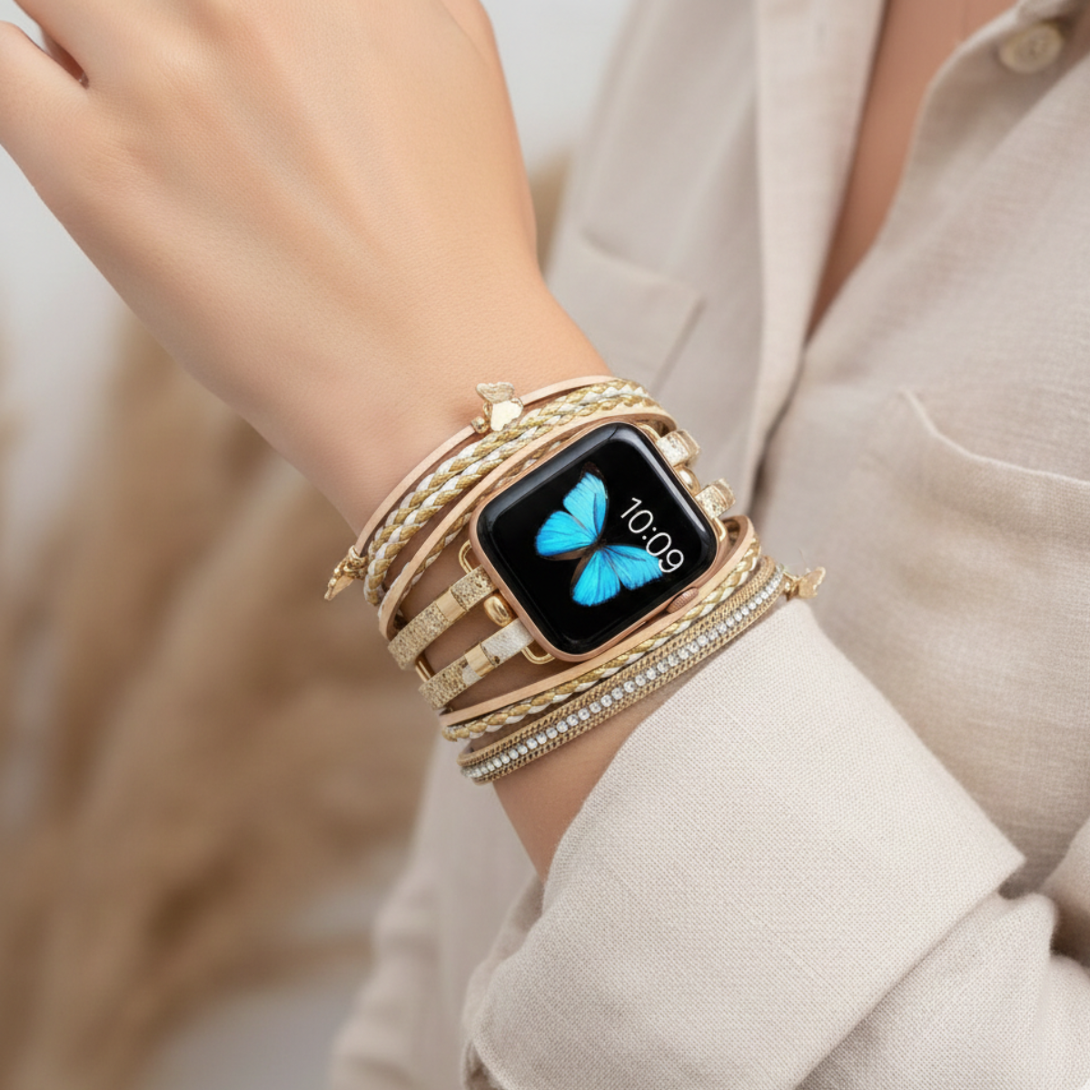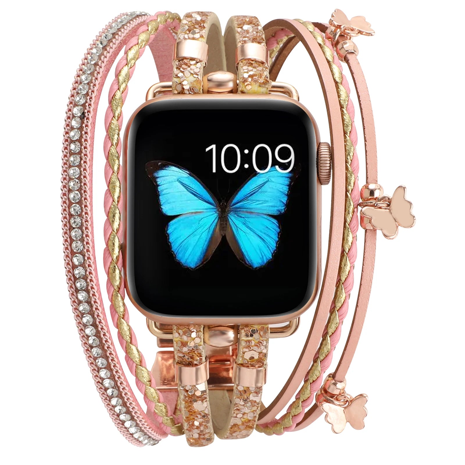 Transformez votre montre connectée en véritable bijou avec le bracelet Alyssa, un bracelet métallique orné de perles élégantes et de pendentifs papillons. Conçu pour Apple Watch, il apporte une touche féminine et raffinée à votre poignet.