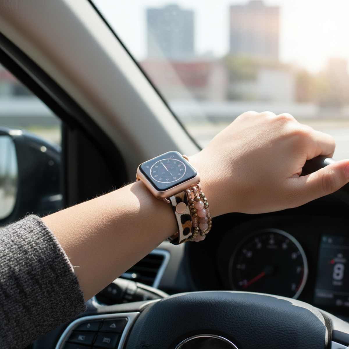 Grâce à sa conception extensible, ce bracelet s’enfile facilement sans fermoir et s’adapte confortablement à la majorité des poignets. Compatible avec de nombreux modèles Apple Watch (Series 2 à Ultra, SE), il transforme votre montre en véritable accessoire mode.