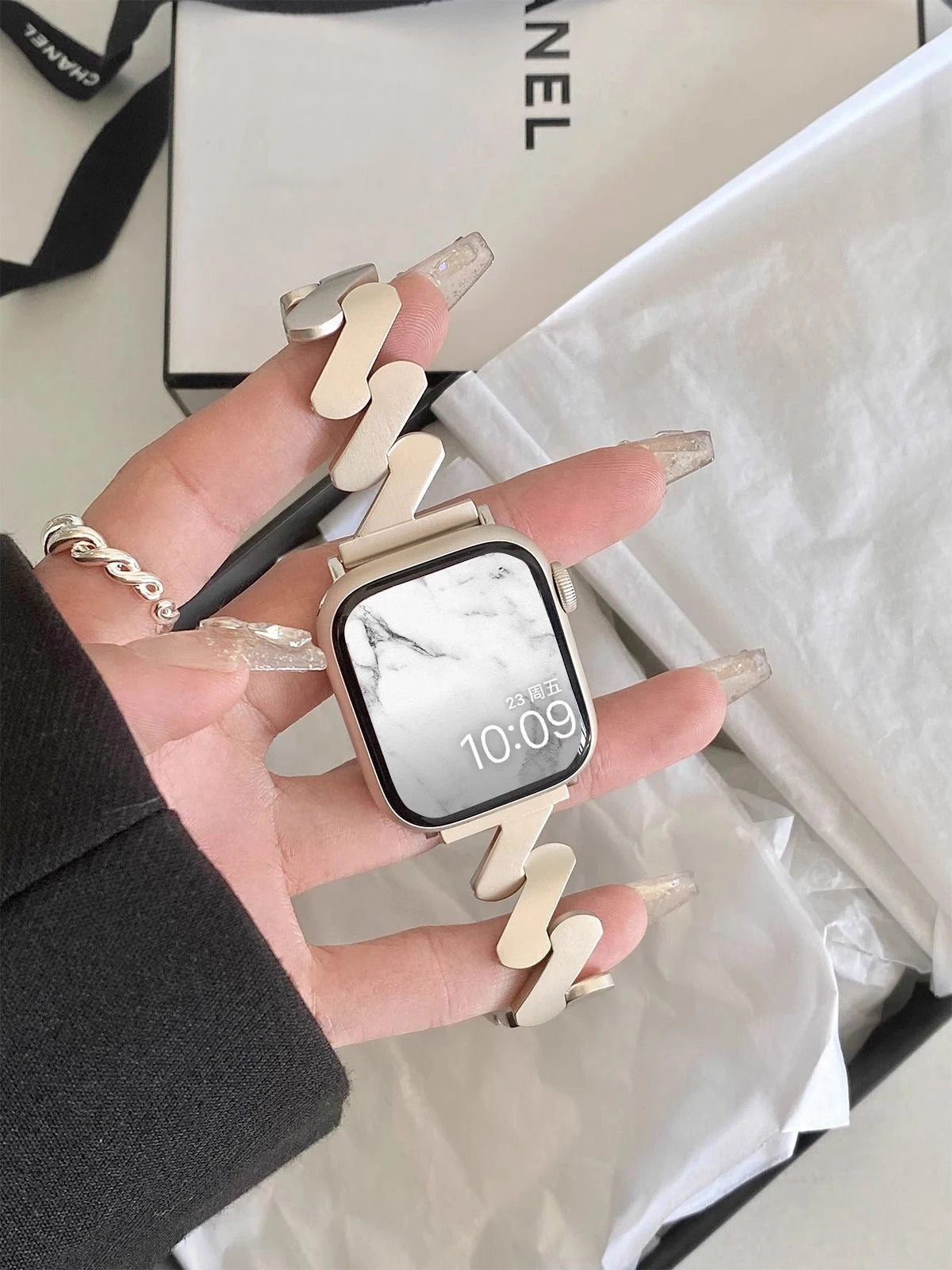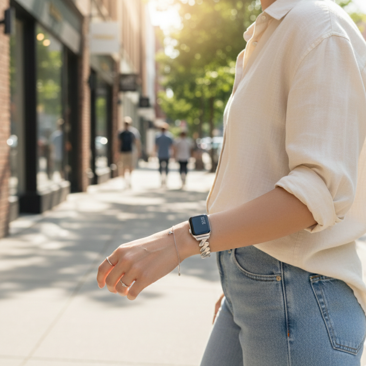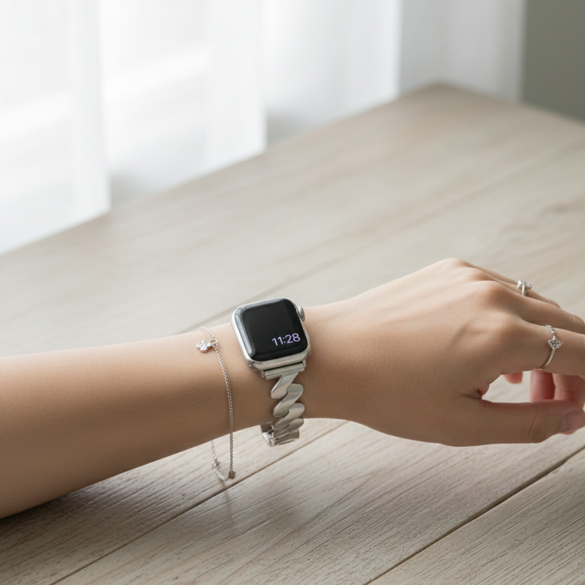 Idéal pour le bureau comme pour les occasions, le bracelet Luna transforme votre Apple Watch en un véritable bijou chic et intemporel.