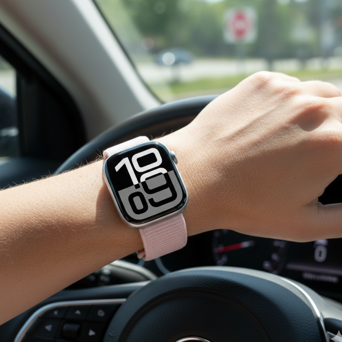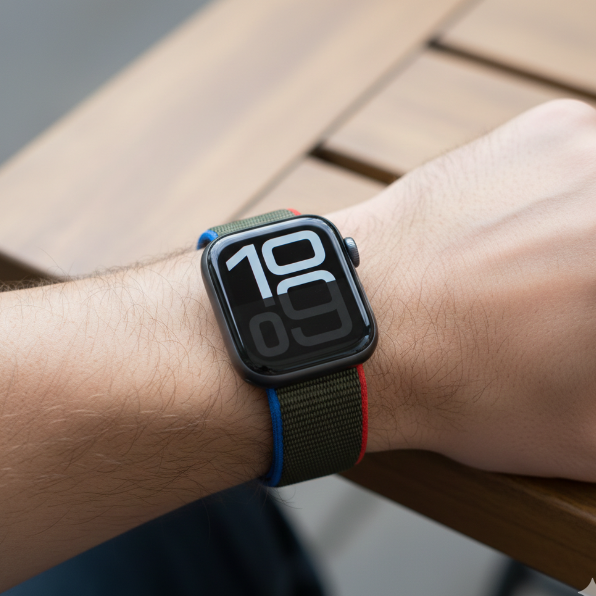 Compatible avec de nombreux modèles d’Apple Watch (Series 10/9/8/7/6/5/4/SE/Ultra), ce bracelet s’ajuste facilement grâce à son système de fermeture pratique. Sa matière tissée favorise la circulation de l’air et limite l’humidité pendant l’effort.